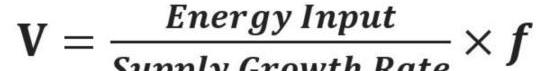 这些变量可以组合成以下方程,称为比特币的能量值(V):