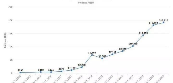 一个更有说服力的数据是,全球加密货币基金的总AuM在2019年持续上升至近200亿美元,同比增长129%,而同期二级市场的表现远没有一级市场繁荣,比特币价格同比上涨97%,以太坊价格仅上涨42%,小市值山寨币价格普遍没有较大上涨,甚至较去年同期出现了下跌。