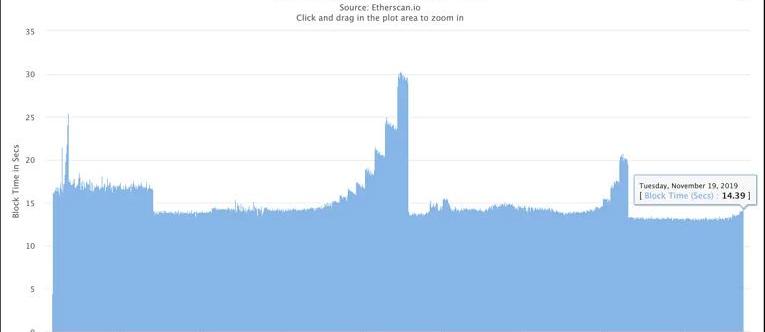难度炸弹第二次生效是在2018年12月前后,运行两个月后,也就是到今年2月,出块时间达到了20秒。