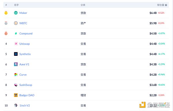 DeFi项目锁定资产前十排名及锁仓量,数据来源:Debank