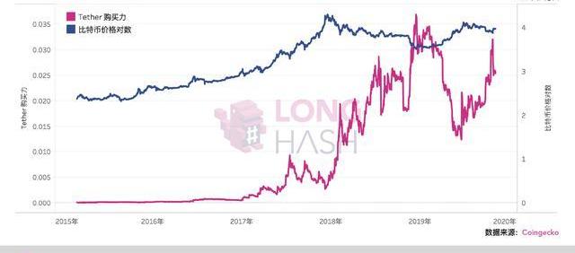 这表明,如果Tether确实在操纵市场,那么其实际操纵市场的能力在比特币价格下跌期间是最强的。这与Tether通过发币推动2017年牛市的说法相矛盾。在牛市高峰期间,Tether的供应实际上未能跟上。
