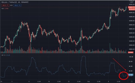 根据该指标,比特币年初在3-3.5万之间盘整,这让很多山寨币反弹。随着马斯克给比特币带来的高度关注,这种情况在一夜之间发生了改变,在特斯拉披露买入比特币的几个小时内,比特币价格被推到了4万以上。自那以后,比特币和山寨币都在反弹,这说明新的机构和散户资金都流入了这个领域。