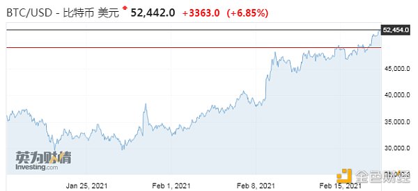 今年以来,比特币的价格已经上涨了70%以上。而在2020年,比特币价格足足翻了四倍多。截至发稿,比特币已经升至52000美元上方,创下历史新高。
