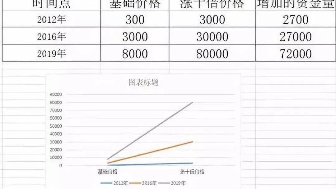 不同的底数翻十倍需要的资金量是远远不同的。最简单的例子,从1分涨到10元是1000倍,需要的资金是9.99元;从10元涨到100元,仅仅涨了十倍,需要的资金量已经是90元了,相比从0.01元涨1000倍需要的资金量已经翻了将近10倍了。