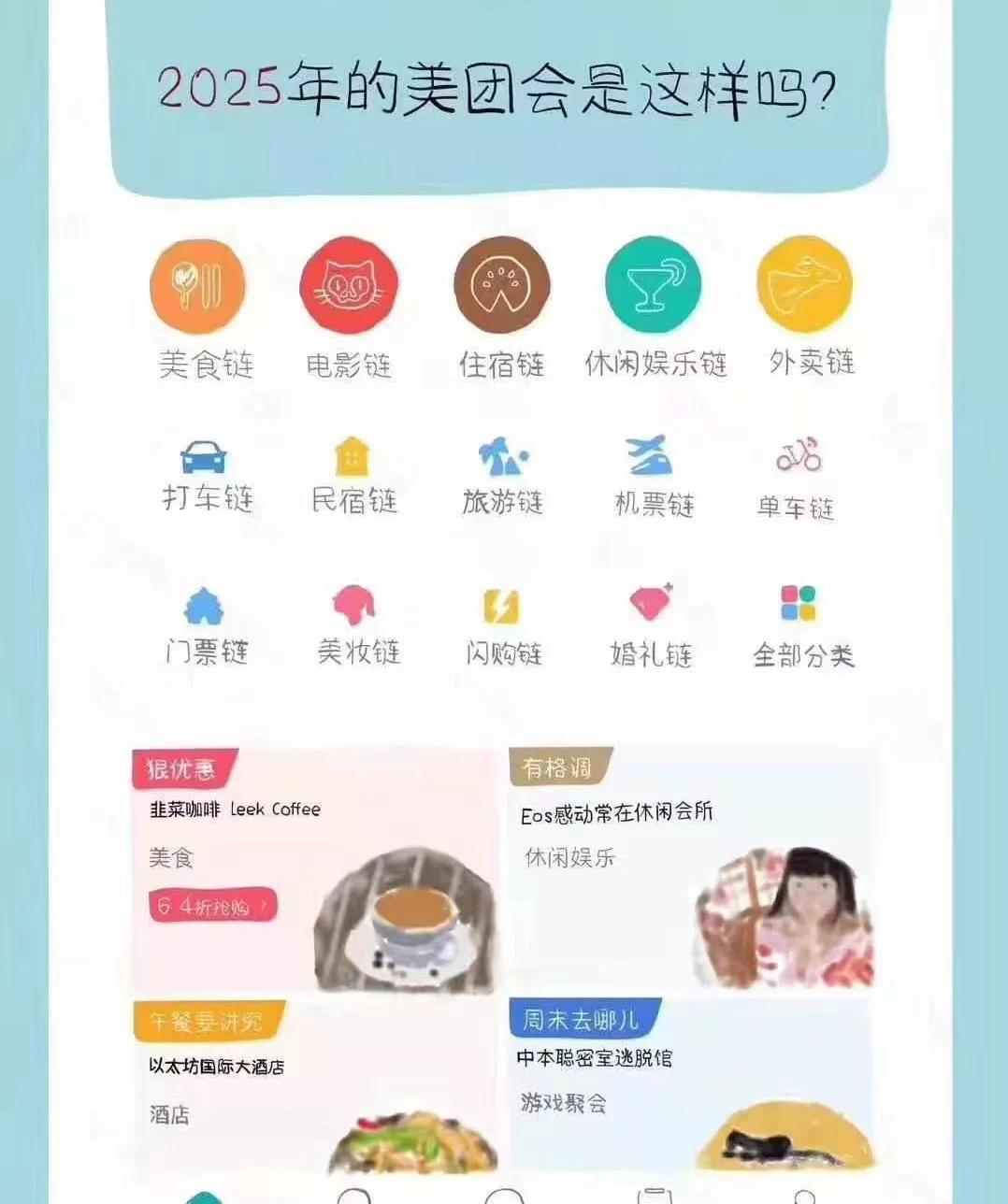 而在中国互联企业中,美团是少数没有布局区块链的互联网企业,此次王兴的出现,让人们浮想联翩,美团这是要接受数字货币支付了吗?更是有网友画出了2025年美团的区块链布局。
