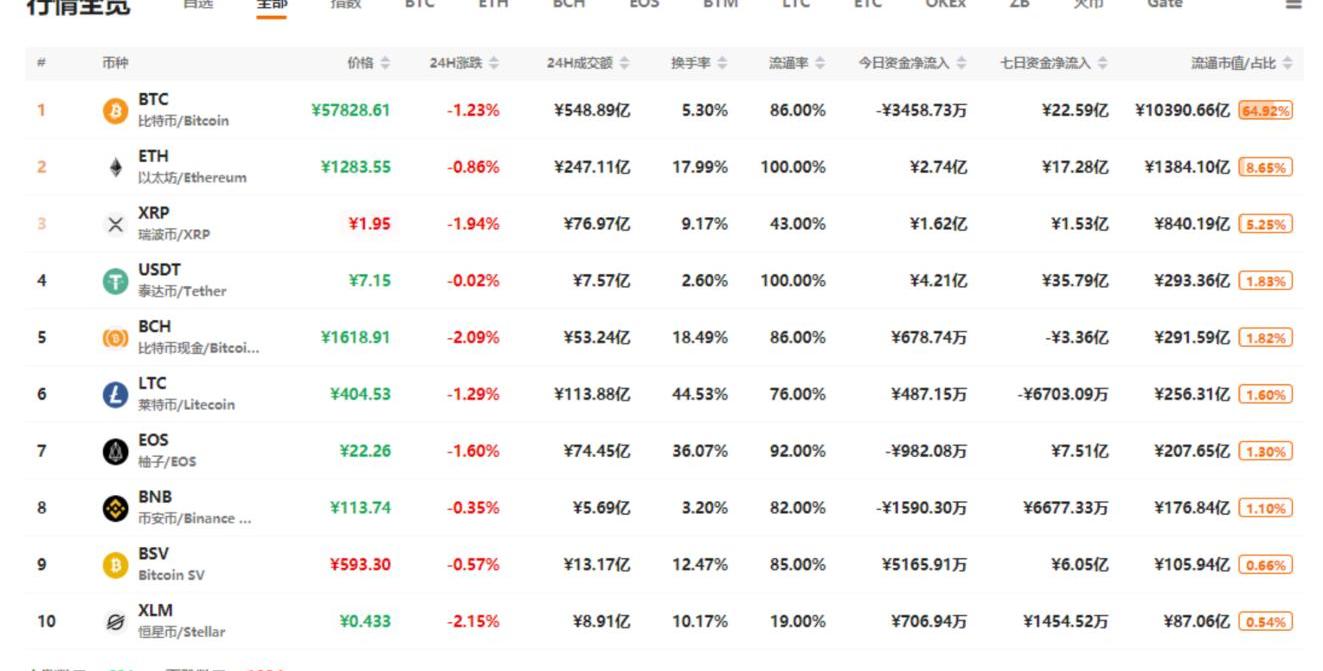 据QKL123数据统计,2019年10月09日13时,全球Token市场的总市值为16016.11亿元,24小时总市值增减-0.98%,总成交额为3680.24亿元,总成交额变化-18.29%,市场活跃度明显降低。市值前十加密资产中,XLM24小时下跌幅度最大,BNB24小时下跌幅度最小。巴比特综合指数报11380.98点,24小时涨跌为-1.41%,反映主力有所回调。