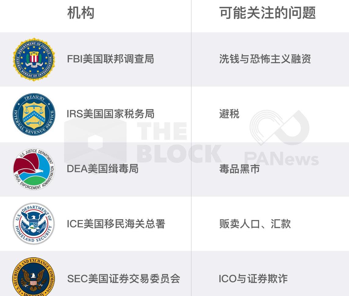 从公开记录中,我们无法得知区块链分析服务的具体应用领域。各机构最有可能重点关注的问题如下所示。