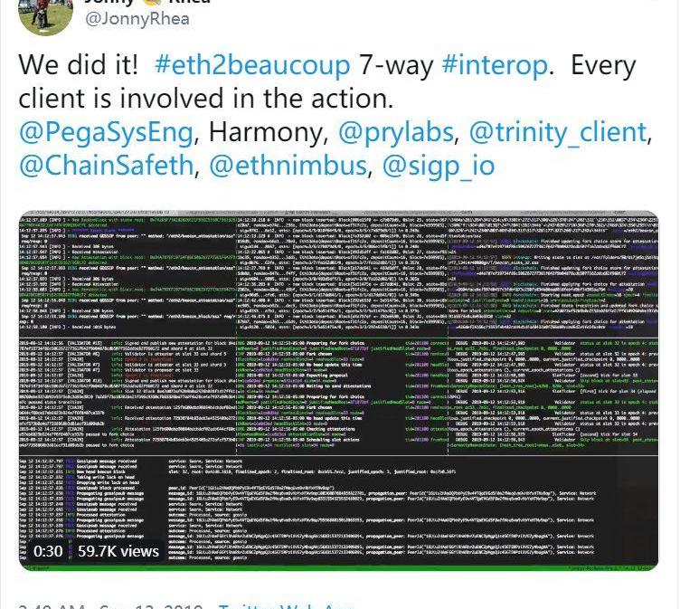 ?最后,最重要的时刻到啦,所有这7个Eth2.0客户端都是实现了互操作性!?(备注,除了Shasper客户端之外)