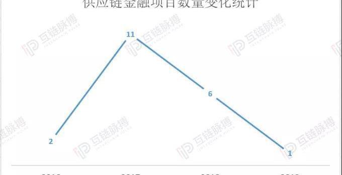 互链脉搏不完全统计,2012至2019年,布比、趣链、复杂美、万向区块链四家公司,每年披露的供应链金融项目总数分别为2个、11个、6个、1个。