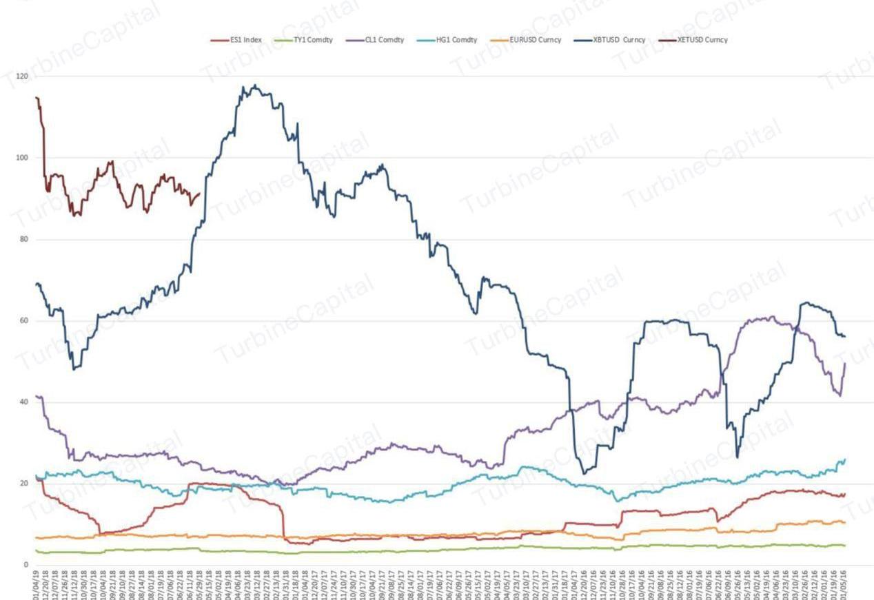 作为背景,下图显示了近年年比特币和以太币与标准普尔500指数、10年期债券、大宗商品(西德克萨斯原油和铜)和欧元的波动性: