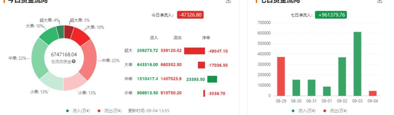 截至14时,BTC的今日资金净流出47326.80万元,较昨日出现反转。其中,超大单净流出49847.10万元,大单净流出17036.50万元,中单净流入23393.50万元,小单净流出3836.70万元。市场以超大单减仓居多。