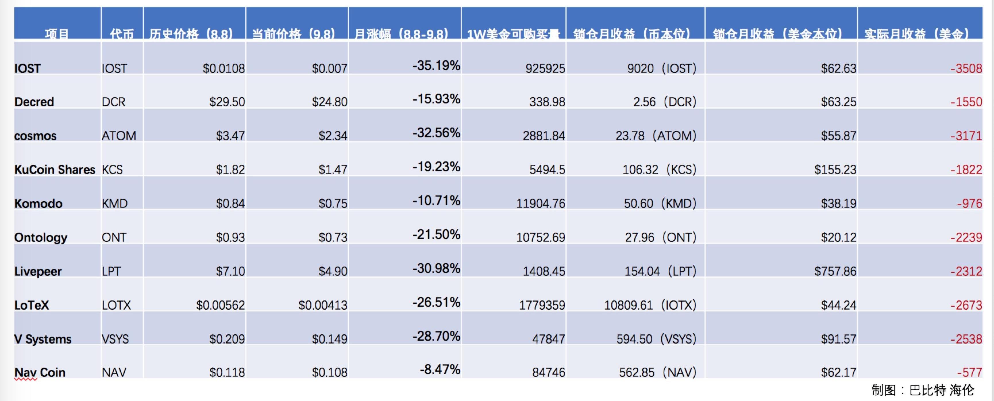 用1万美金Staking,前十大项目最高月亏3508