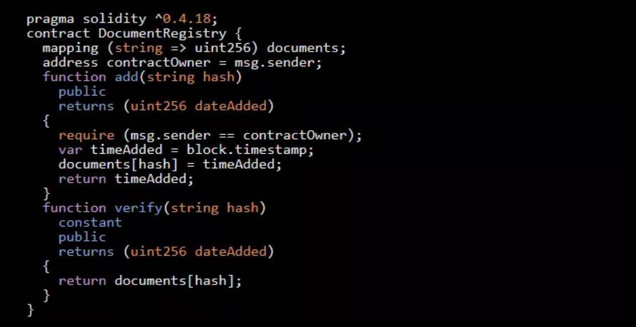 文档注册表是具有商业价值的区块链应用程序中最容易实现的一个应用程序。在2016年,本文中的几行代码就足以助力一个百万美元的项目。如今,它们仍然能在更复杂的解决方案中反复使用。