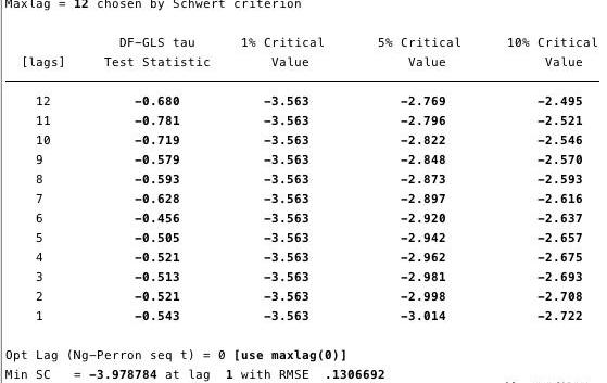 为了找到醉汉,首先,我们将看到我们的模型应该使用什么样的滞后顺序规范。