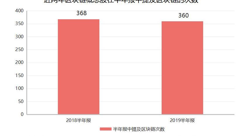 2018年半年报中,118家公司总共提及区块链的次数是368次,而2019年半年报提及的次数是360次,总数变化不大。