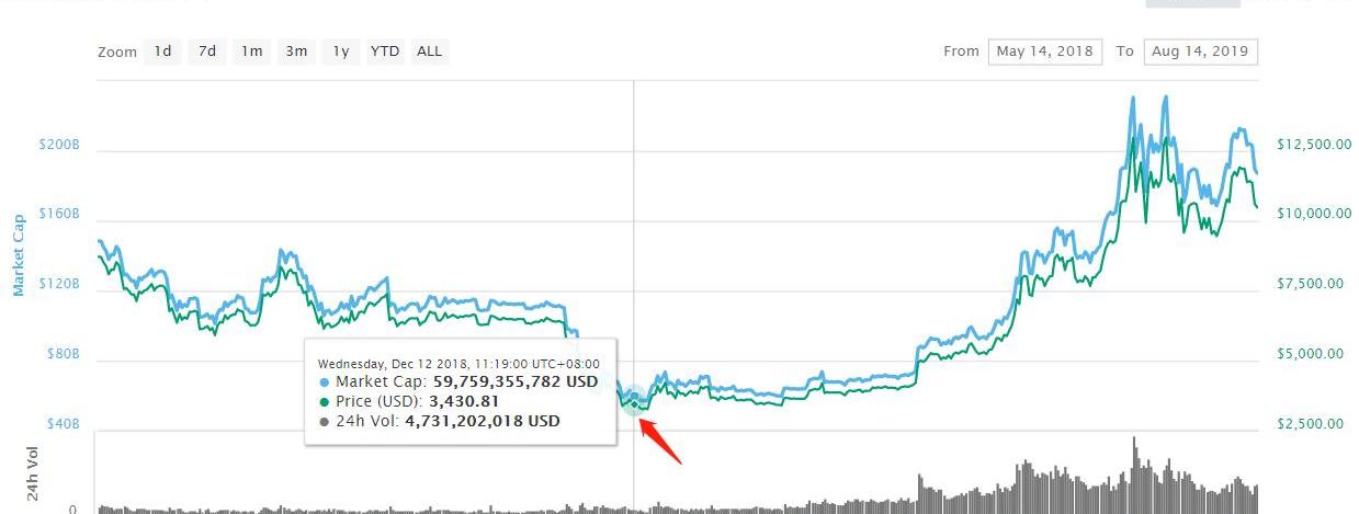 当时比特币的价格为3430美元,确实处于历史级别低点。