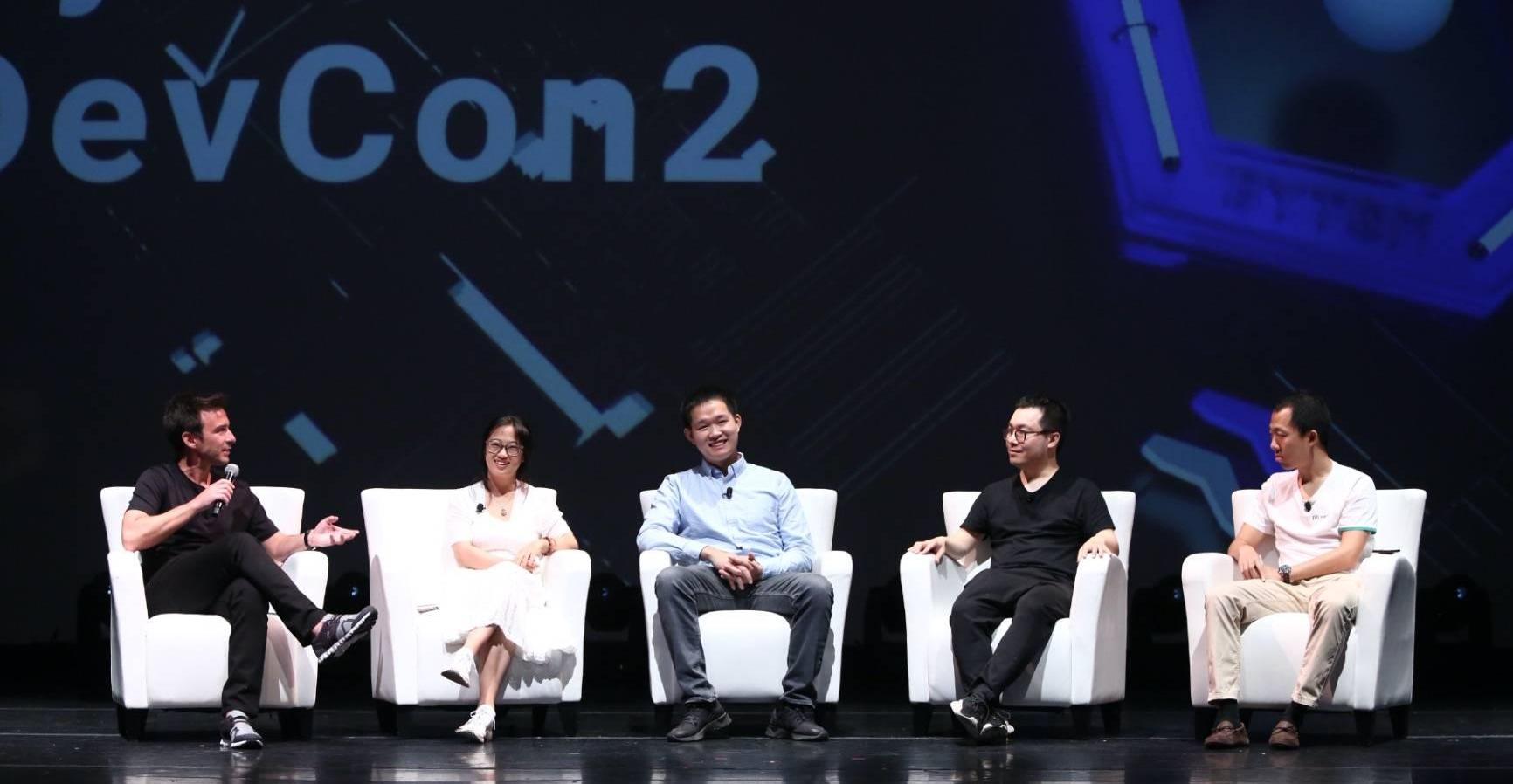 从左到右依次为,MultipliedCEONancyLi、ETCLabs主管DarinKotalik、Algorand工程研究负责人NaveedIhsanullah、Harmony联合创始人NickWhite以及比原链工程VPJames
