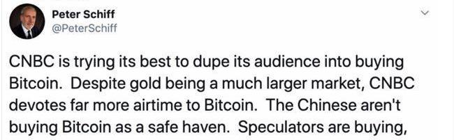 美国消费者新闻与消费频道(CNBC)正在尽最大努力它的观众购买比特币。尽管黄金一直是个更大的市场,CNBC却给了比特币更多的播放时间。中国人不会把比特币当作避风港。投机者在购买,他们押注中国人会将比特币当作避风港而购买。