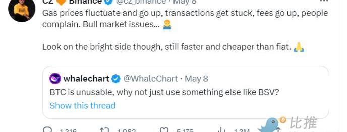 受此影响,币安也不得不关停提币交易,用更高手续费解决未处理的BTC提现交易,这又进一步推升区块打包交易费用。5月8日,币安发推称,由于我们设定的费用没有预料到最近BTC网络手续费激增,因此仍有大量来自币安的提现交易尚未完成。团队正在努力加快所有未处理交易的确认。随后,进一步表示「由于存在大量待确认交易,已暂时关闭BTC提现。」