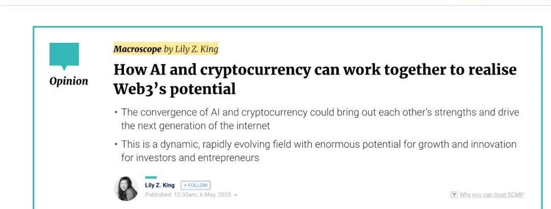 编者按:《南华早报》网站5月6日刊登了CoboCOOLilyZ.King的专栏文章,谈论了AI与区块链的融合趋势、未来发展方向与潜力。
