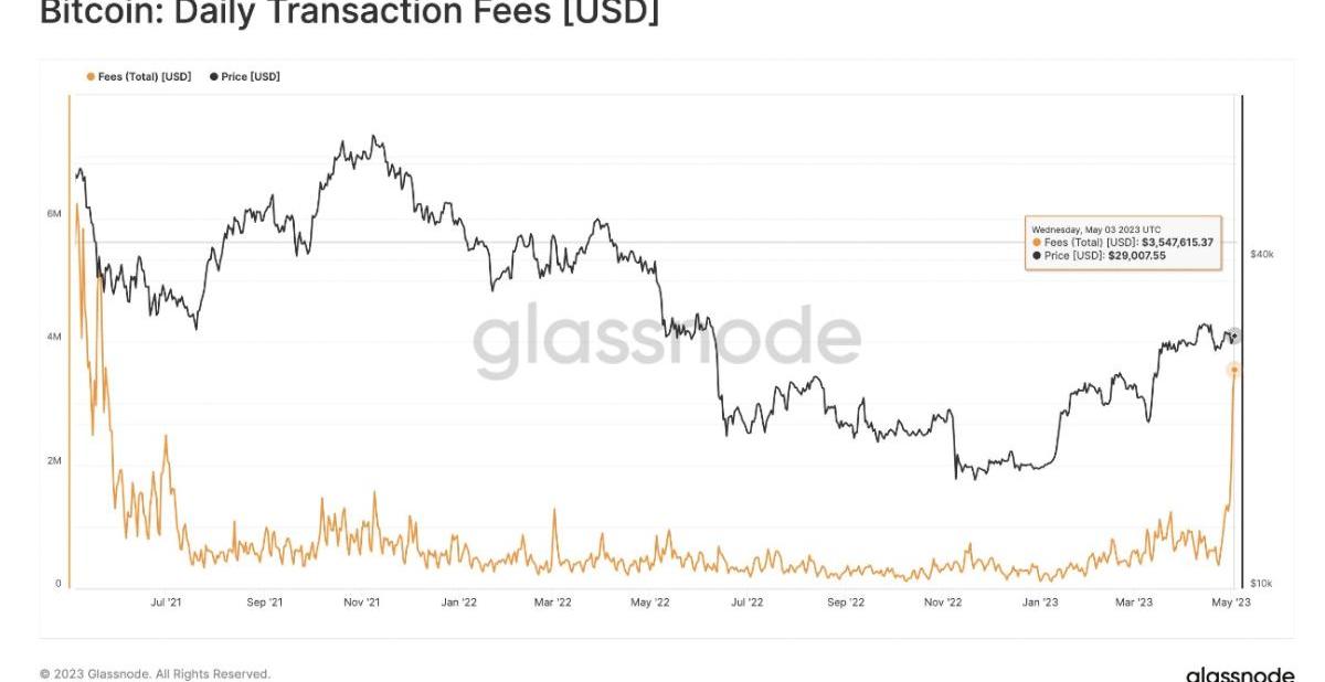 5月3日,总共向矿工支付了350万美元的交易费。这是两年来的最高值。
