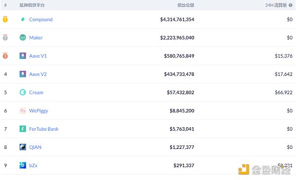 DeFi借贷平台借款占比,金色财经制图, 数据来源:Debank