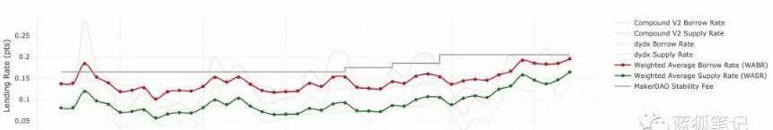 Dai加权平均借贷和供应率源自伦敦银行同业拆借利率,这是一种衡量各银行贷款平均成本的传统金融工具。