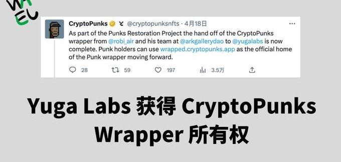 “作为‘Punks修复计划’的一部分,YugaLabs目前已获得了CryptoPunksWrapper的所有权。”