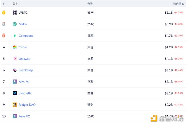 DeFi项目锁定资产前十排名及锁仓量,数据来源:Debank