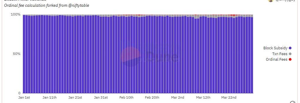 根据@smyyguy的数据,3月份只有0.3%的矿工收入来自Ordinals协议。Ordinals协议还很年轻,天知道会不会真的发展到影响比特币网络的运行,又哪能知道届时的影响是好是坏...