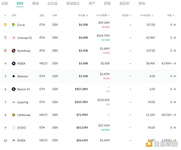 过去24小时去中心化交易所的交易量数据来源:Debank