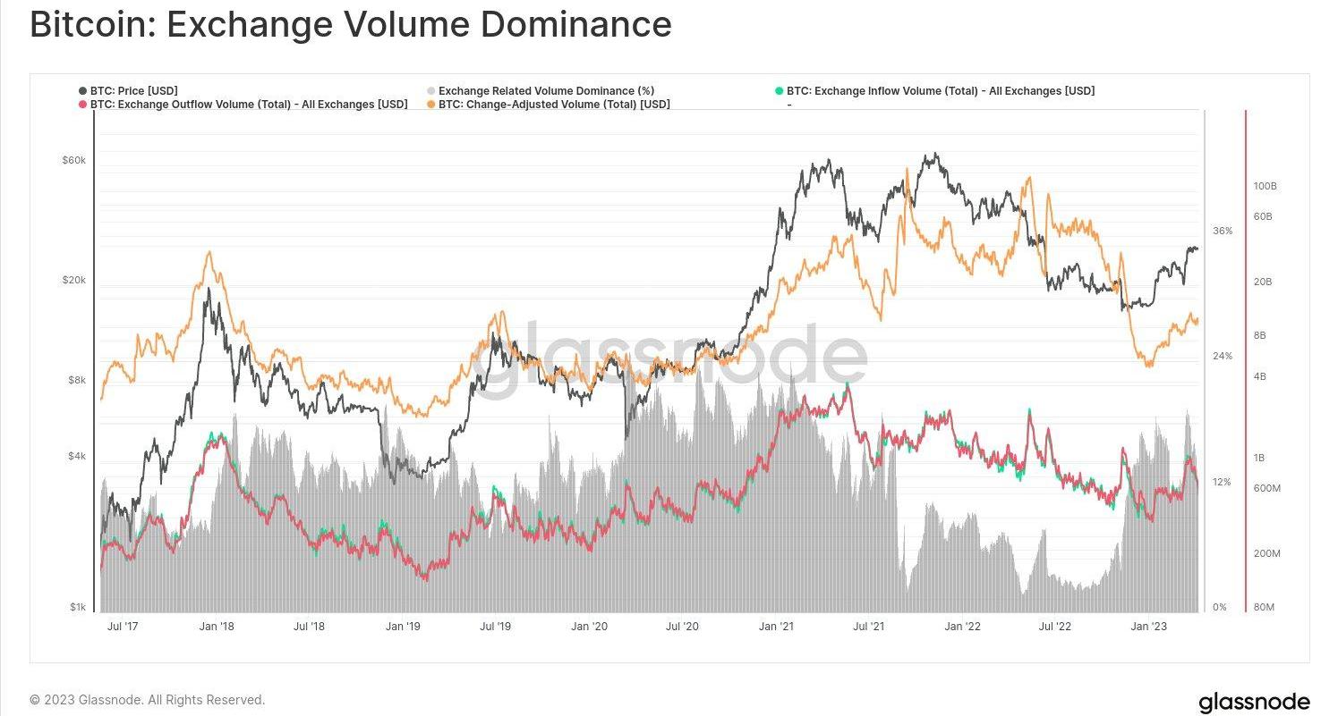 我们可以从美元总交易量以及与交易所相关的链上交易量中看到这一点。