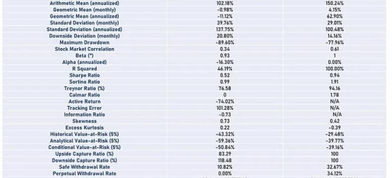 历史上看ETHE的风险回报比不佳,如表2可见ETHE几乎在所有方面相较于ETH/USD表现较弱。意味着如果准备长期持有ETHE可能要做一些针对性的收益增强策略,否则如果牛市不能快速到来的话其表现有弱于大盘的风险。