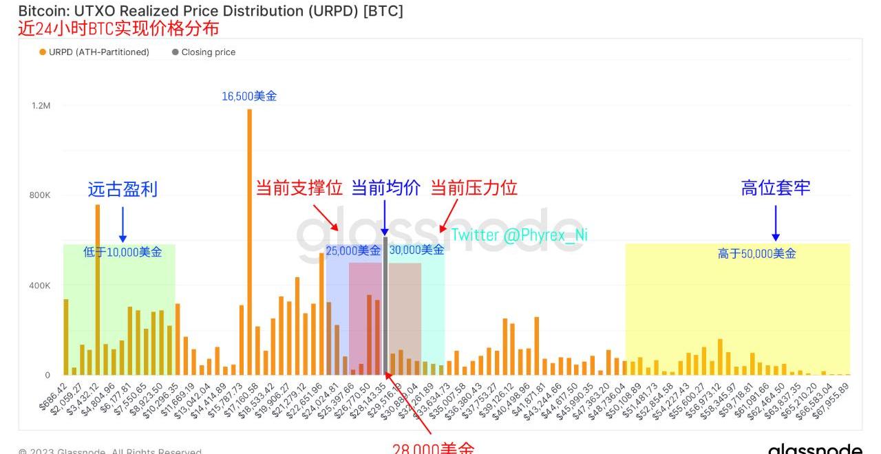 按照以往出现的经验来看,这种大批量BTC的集中很容易形成震荡的趋势,当初在16,500美金和22,500美金都经历了较长时间的纠葛才得到了突破,但好处就是当筹码堆积量较高的时候也说明当前的价位会形成坚固的筑底,这部分的持仓者只要不跌破位一般不会出现大规模减持,从某种程度来说也是看好BTC的后市。