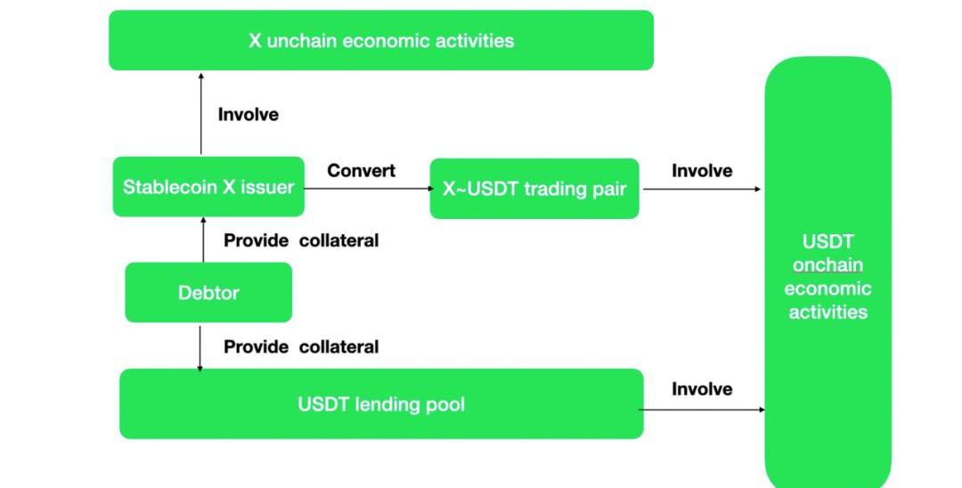 而如果拥有X稳定币独特的经济活动,那么X相较于USDT,USDC就有了差异。这就会产生USDC,USDT换X,参与经济活动的动力。