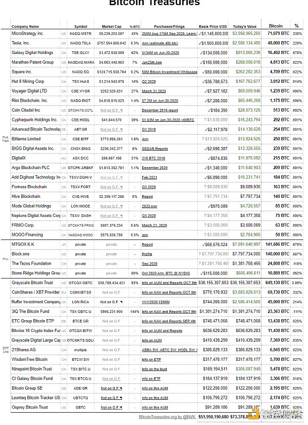 如果说传统大型银行与加密银行的持续迭代是特斯拉这样企业入场的基础门票,那么一众上市公司下场配置比特币则为特斯拉准备了足够多的玩伴。