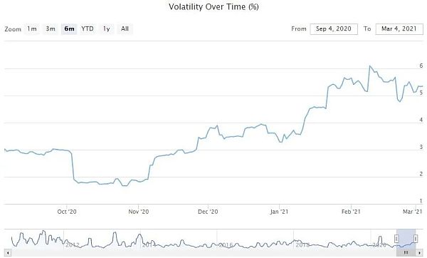 波动性的增加使得比特币在上涨或者下跌两个方向上都可以采取进一步的价格行动。因此,它也略微增加了比特币下跌的可能性。