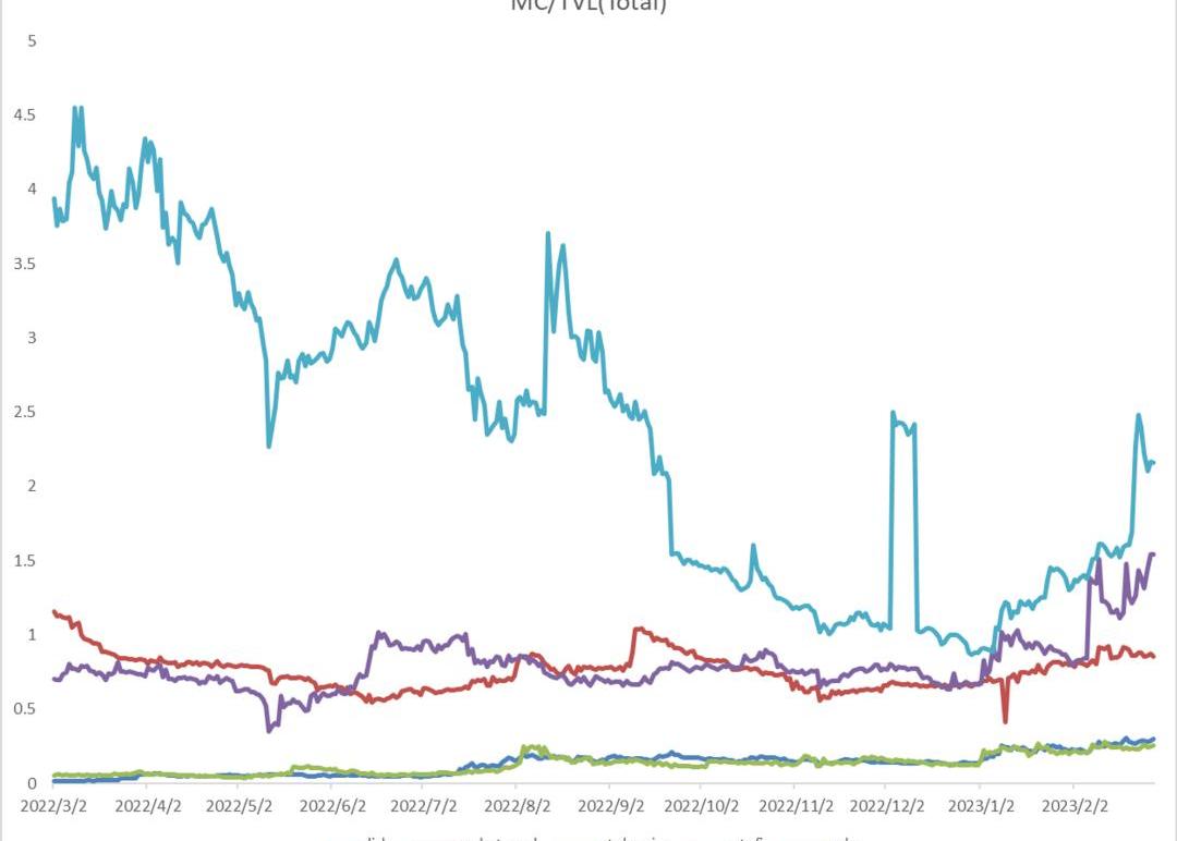 对比分析MarketCap/TVL,可以看出年后市场对LSD赛道的估值明显抬升。以下几点值得注意:
