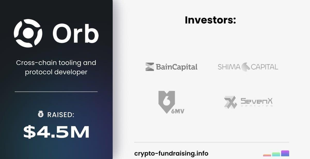 跨链桥开发商OrbLabs近期宣布获得由Bain领投、SevenX等参投的450万美元融资,将专注于开发跨链桥模型,以确保消息和资金在不同链上的低成本交换。