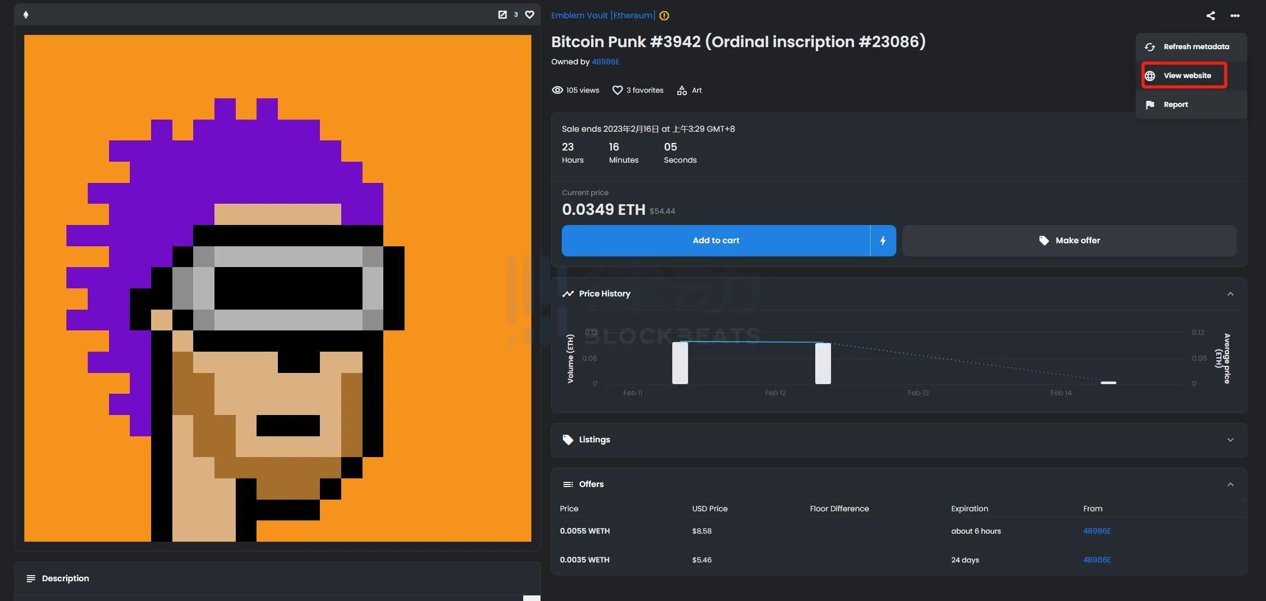 检查的步骤如下。首先,先检查Vault中是否包含了对应的比特币NFT。在OpenSea上找到「Viewwebsite」选项并点击。