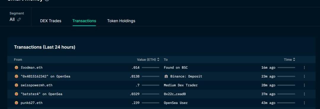 Walletlabels钱包地址标签:通过将钱包进行分类,原本匿名的链上地址会被打上多个标签,如智能合约、交易所、智能货币、基金、重度DEX交易员、NFT收藏者等。用户可以快速了解执行交易的钱包类型,方便对合约、项目等进行尽职调查,并从巨鲸、基金等钱包的地址活动中发现市场机会。Smartmoney聪明钱:Nansen的钱包标签中最有名的就是“聪明钱”。拥有聪明钱标签的是加密世界中的精英们的钱包地址,其中包括巨鲸、VC等用户的地址。追踪聪明钱地址的动向,可以帮助用户追踪巨鲸、重度DeFi玩家的实时动向。