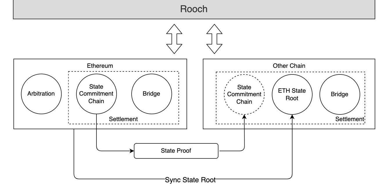 RoochEthereumLayer2?=Rooch+Ethereum(Settlement+Arbitration)+DA这是Rooch首先要运行的网络。提供一个由Ethereum安全保证的,可以和Ethereum上的资产互通的Move运行平台。未来可以扩展到多链结算。RoochLayer3RollupDApp?=Rooch+DAppMoveContract+RoochEthereumLayer2(Settlement+Arbitration)+DA如果应用把自己的结算和仲裁部署到RoochLayer2,它就是一个Rooch的Layer3应用。XChainRollupDApp?=Rooch+DAppMoveContract+XChain(Settlement+Arbitration)+DA任意链都可以通过Rooch来给开发者提供一套基于Move语言的RollupDApp工具包。开发者只需要通过Move语言编写自己的应用逻辑,就可以运行一个安全受XChain保障的,资产可以和XChain互通的,独立环境的Rollup应用。当然这个需要和各公链的开发者来协同开发。SovereignRollupDApp?=Rooch+DAppMoveContract+DA应用也可以将Rooch作为SovereignRollupSDK,不部署Bridge以及Arbitration合约,StateCommitmentChain也保存在DA,保证可验证性,由社会共识保证安全。ArweaveSCPDApp?=Rooch+DAppMoveContract+DASCP和SovereignRollup思路类似,SCP要求应用程序的代码也要保存到DA。而Rooch中合约部署和升级都是交易,合约代码在交易中,都会写到DA层,所以我们认为符合SCP的标准。MoveDAppChain?=CosmosSDK+MoveOS+DAppMoveContractMoveOS可以作为一个独立的Move运行环境嵌入到任意的链的运行环境中,去构建应用链或者新的公链。非区块链项目非区块链项目,可以把MoveOS作为一个可以带有数据校验能力以及存储证明能力的数据库使用。比如用它做一个本地的博客系统,数据结构和业务逻辑通过Move表达。等未来基础设施成熟,则可以直接和区块链生态对接起来。再比如可以用它做云计算中的FaaS服务,开发者通过Move编写FaaS中的Function,平台托管状态,用户间的Function还可以互相组合调用。更多的可能性需要大家探索。Rooch的模块化方案可以适应于不同类型以及阶段的应用。比如开发者可以先通过部署合约在RoochEthereumLayer2上验证自己的想法,等成长起来后,将应用迁移到独立的基于Rooch搭建的App-SpecificRollup中。