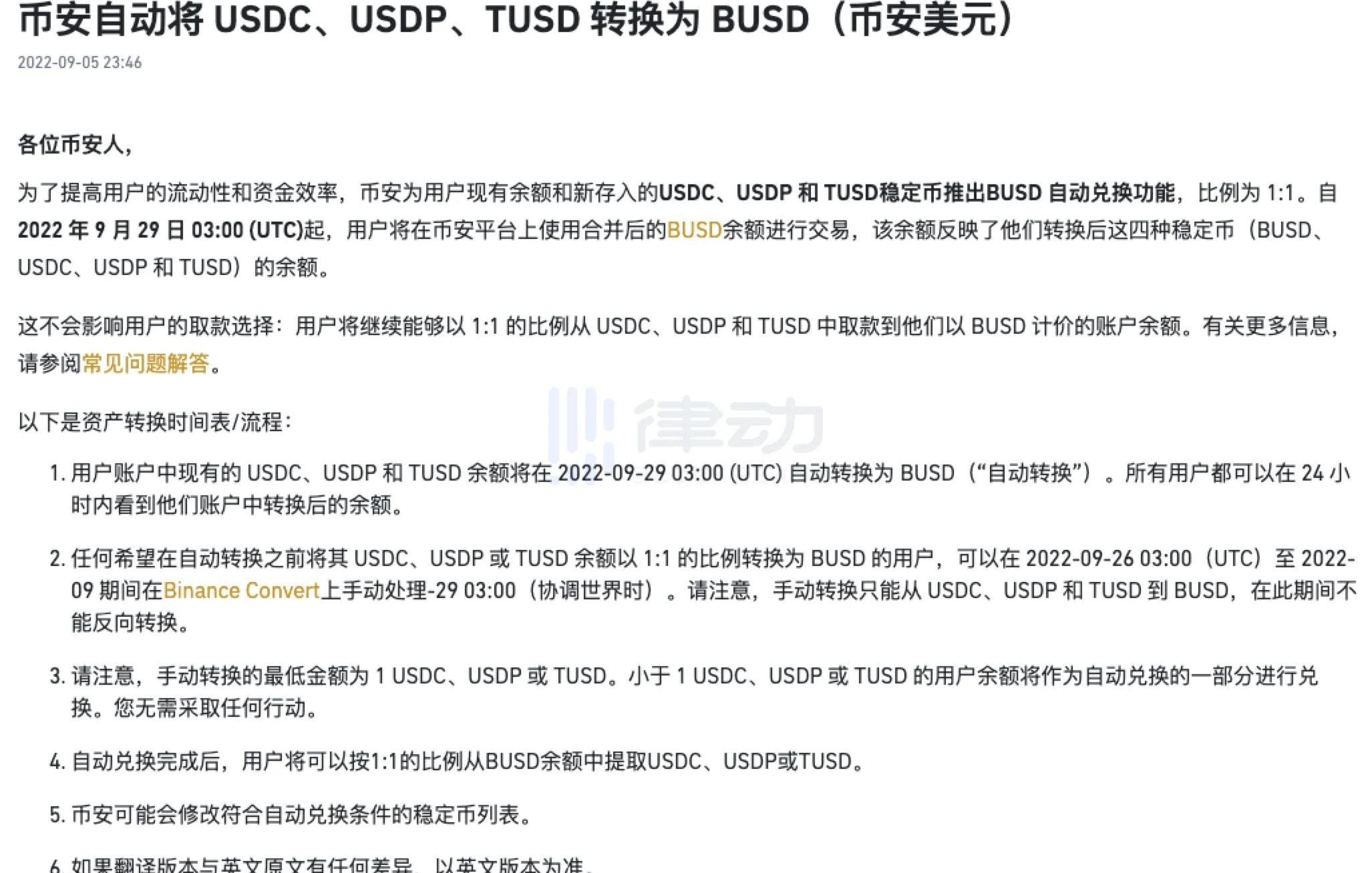 在随后一篇名为《澄清问题:BUSD自动兑换》的官方博文中,Binance给出了自己的回应: