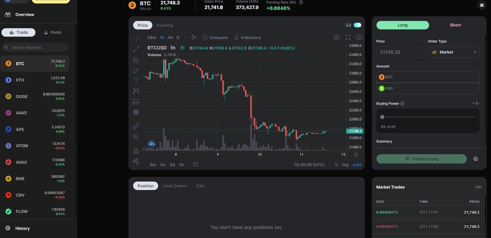 该平台易于使用,用户体验也很棒。杠杆是合成的,因此团队可以实现几乎所有加密和非加密资产的交易。