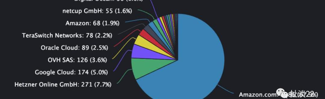另外,这些节点基本是托管在AWS等中心化云服务器上的,换句话说就是,你以为的去中心化区块链,底子里脖子基本都还是握在别人手里。
