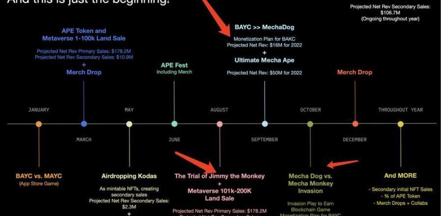 但其实如果你有心的话,只要去回顾YugaLabs早期泄露的路线图,你就能很清楚地知道这一阶段猴子游戏的剧情:机甲猴大战机甲狗。