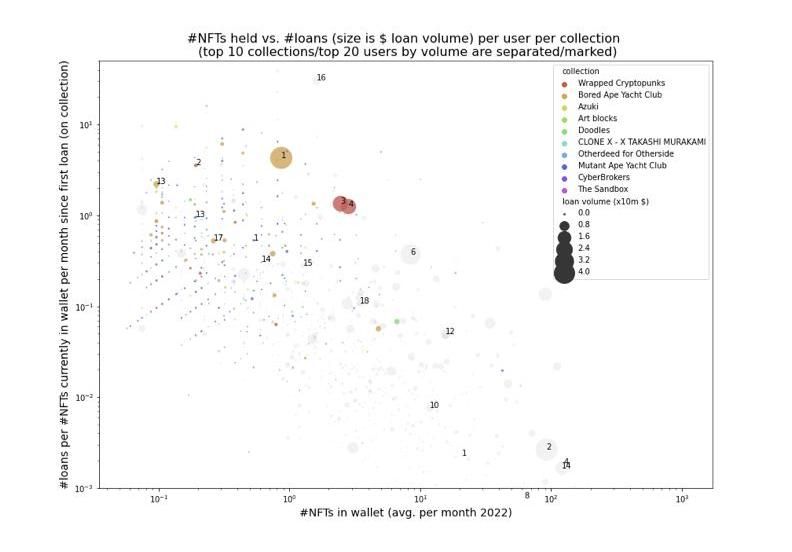 主流钱包通常只关注少数几个系列NFT。按交易量计算,最大贷方主要关注BAYC、MAYC,它们通常具有很高的利用率。