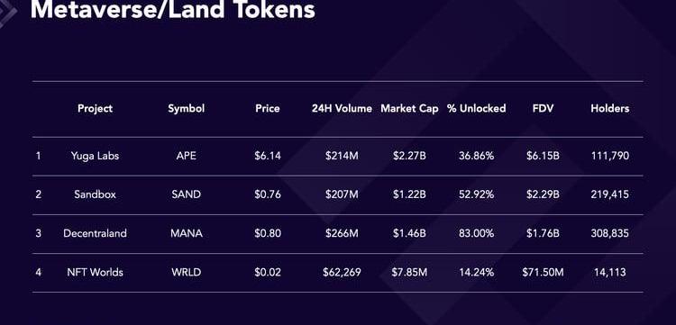 $WRLD?是NFTWorlds生态系统的通证。今年截至目前为止,它的表现超过了$MANA、$SAND?和?$APE。