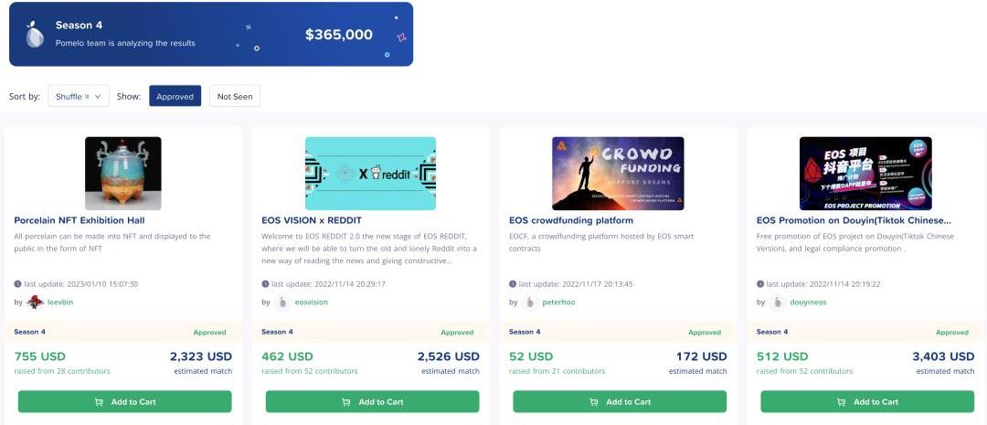 几乎每条公链都有针对开发者、早期项目的Grant资助计划,被选中的通常为开源项目,除了会获得一笔小额的资助外,还会给予项目建设主网的技术支持、市场宣发、媒体PR、地区性社群的孵化等,陪伴项目的成长。大部分公链给予资助的话语权是由基金会决定,例外的是EOS,成立了二次众筹平台Pomelo,以DAO的模式鼓励社区的粉丝投票来评选项目,增加治理权。