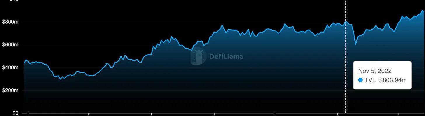 如今,很少有成熟的加密项目拥有比11月初更高的总价值锁定。GMX以美元计价的TVL比11月5日上涨了9.9%。